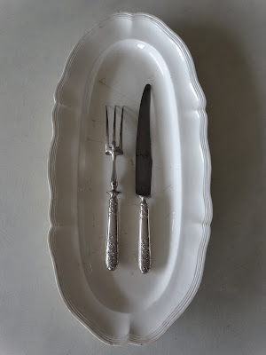 お皿に置いてみたフォークとナイフは、大きなものでお肉を切り分ける際に使うものです。